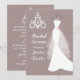 Vestido e candelabro brancos de casamento em um fundo acastanhado
