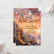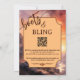 Chá de panela de aquarela com bota de cowboy com flores que não passavam por um pôr do sol em um vale. Luzes de cordas festivas adicionam atmosfera. Na parte traseira, é fácil personalizar o modelo de código QR. Se não for necessário, pode simplesmente eliminá-lo. Um belo convite para uma celebração do estilo country e ocidental.