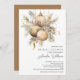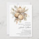 Este elegante chá de panela natalício apresenta Enfeites de natal de ouro de cor d'água lindíssimos com delicados galhos de pinheiro e fitas de ouro. O convite é perfeito para celebrar a noiva que se aproxima durante o feriado. A frente do convite apresenta os Enfeites de natal dourados com aquarela e o nome, data e hora da noiva do chá. O design geral é festivo e sofisticado, e o convite é para impressionar seus convidados.