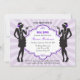 Este convite chique é ideal comemorar um chá de panela retro com um tema do 1920. Caracteriza a silhueta de dois flappers em um fundo modelado explosão da estrela e em um quadro ornamentado com todos os detalhes do partido. Design elegante e na moda que comemora rujir 20s e o estilo icónico do flapper.