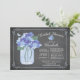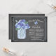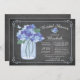 O chá de panela moderno do frasco de pedreiro que caracteriza um frasco de pedreiro do país encheu-se com as flores azuis & roxas ajustadas em um fundo chique do quadro com um acento bonito floral & da borboleta e um quadro lunático. Lance nosso chá de panela convidam sobre para ver uma parte traseira de harmonização para um toque especial extra. Aperfeiçoe para um chá de panela chique do país rústico para a queda, o inverno, o primavera ou a queda.