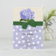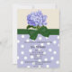 Um convite bonito para que uma noiva bonita seja! Caracteriza um hydrangea lavendar na parte superior e um teste padrão lavendar e branco do polkadot na parte inferior. Um gráfico de uma fita verde e o arco separam os dois. Todo o texto é customizável.