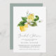 Este chá de panela moderno de limão é perfeito para um chá de casamento de primavera ou verão. O design mediterrânico rústico apresenta limões aquosos brilhantes e bonitos com flores brancas boêmicas e folhas verdes elegantes.