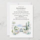 Design perfeito para o seu chá de panela: a pintura aquarela retrata um elegante jardim de vilarejo italiano ao lado do lago. No primeiro plano, uma charmosa porta de ferro seca se abre em um terraço de pedra junto a colunas brancas e balustradas clássicas. O jardim está cheio de flores vibrantes e florescentes em tons de lavanda azul, rosa e macia, complementados por plantas cercadas e escalando o verde. Além do portão está um lago tranquilo, refletindo as suaves silhuetas de montanhas distantes de azul roxo. Através da água, uma grandiosa vila com telhados de terracotta e arbustos senta-se entre ciprestes, exuando serenidade e beleza do eterno. Design perfeito para o seu chá de panela.