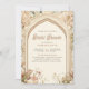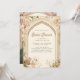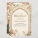 O chá de panela elegante convida com belos pavões e arcos antigos.