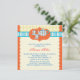 chá de panela personalizado moderno e chic. Apresenta um pote de chá e xícaras de chá com bolinhas de cores diferentes. Trendy design em cores brilhantes.