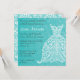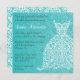 Chá de panela da cerceta com o vestido de casamento laçado estilizado. Personalize com seu próprio texto. Ilustração original pelo pj_design. Este convite nupcial do vestido de casamento caracteriza um vestido de casamento laçado altamente estilizado decorado com lovebirds, videiras, e bagas. O fundo tem uma cor damasco da cerceta. Este é um convite muito formal que seja grande para uma celebração da noite. Decorado com uma cor damasco na parte traseira.