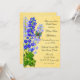 design de uma elegante lua espanhola, de primeira arte, de uma Lua verde, sobre flores azuis do jardim do Delfinium, contra um fundo de ouro, pela designer Carolyn McFann do Two Purring Cats Studio impresso em convites de chá de panela personalizáveis.