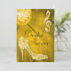 Convites de chá de panela personalizados e elegantes. Bonitos convites de ouro e preto de dupla face para chás de panela com uma bola retrovisor retro divertida, brilho de rotinas de imagem impressa glamourosa, sequências, joias de borda brilham calçados de saltos altos e estilettos, e notas musicais brilhantes/notas musicais com brilho em um ouro vibrante e luzes pretas e fundo brilho. Chic, clássico, fofo, giro, convites modernos com cores modernas e modernas. Estes convites, na moda, sofisticados, divertidos e bonito são decorados/impressos em ambos os lados. Convites perfeitos para um evento de dança jante/dança noturna. NOTA: todos os convites no Zazzle têm imagens impressas planas. Se precisar de assistência para personalizar seu produto, entre em contato comigo através da minha loja e eu ficarei feliz em ajudar.