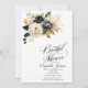 Convite Chá de panela Dourado de Flores Brancas Pretas