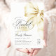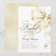 Este convite sofisticado apresenta um clássico arco de ouro e um roteiro manuscrito romântico, perfeito para um chá de panela de tendências e chic. O elegante design com fita de cetim dourado e charme de coquete adiciona um toque de classe ao seu evento. Personalize o texto para corresponder aos detalhes do evento e crie um convite para eternos para o dia especial.
