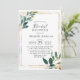 Este Chá de panela moderno Eucalipto - apresenta um quadro de ouro geométrico com galhos e galhos Eucaliptus florescentes, um roteiro moderno. O reverso do convite à noiva é verde-oliva escuro.