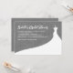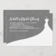 Um elegante vestido de noiva acentua esta chá de panela sobre um fundo ilustrado de linhagem de cinza. Este convite é mostrado no jornal matte; no entanto, o meu favorito é o papel de linho, que funciona lindamente com este design. Este convite faz parte da Coleção Elegante de Chás de panela na roupa de cinza. Se forem necessários itens de coordenação adicionais, entre em contato conosco em prettyfancyinvites@gmail.com com o seu pedido.