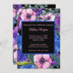 Chá de panela Elegante, Azul Floral, Púrpura, Convite Rosa. Personalize este convite com as suas informações. Design elegante e impressionante contra o fundo preto. Tão bonito e especial.