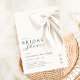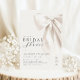 Chá de panela Elegante Branco. Este convite sofisticado apresenta um arco branco de marfim clássico e um roteiro manuscrito romântico, perfeito para um chá de panela de tendências e caprichos. O elegante design com uma fita de satin de marfim e um charme de coquete adiciona um toque de classe ao seu evento. Personalize o texto para corresponder aos detalhes do evento e crie um convite para eternos para o dia especial.
