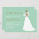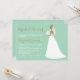 Um chá de panela elegante e caprichoso com uma silhueta de noiva com um buquê de flores em um vestido de noiva estilo linha. Muito feminina e bonito com cores brancas, azuis e douradas.