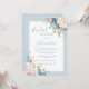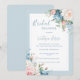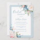 Bonito drangeas brancas e azuis, rosas e outras variedades de flores que embelezam dois cantos deste adorável convite para chás de panela. Um convite perfeito para noivas para qualquer estação. As flores de aquarela são simplesmente lindas. Um belo fundo azul de coordenação é simplesmente adorável e adiciona a esta design.