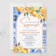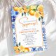 Celebre a noiva a estar com um chá de panela com tema cítrico na moda que combina elegância e charme. A design apresenta ilustrações aquarelas de laranjas, clementinas, limões e folhas verdes, sobre um fundo charmoso de fundo para uma sensação de verão no Mediterrâneo. Use as ferramentas de design para personalizar o texto, as fontes e a cor. Também disponível como download.