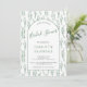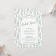 Um elegante e moderno chá de panela de padrão botânico de eucalipto verde com uma coloração aquática, com um padrão correspondente no reverso. Personalize o texto para se adequar à sua celebração. Arte original de Nic Squirrell