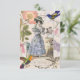 Uma ilustração de 1835 da revista francesa de moda "Petit Courrier des Dames" forma a peça central desta bela colagem de vintage. Ao redor das bordas estão beija-flores, roupas de rendas e um berço. Texto personalizável. Convite para pegar os olhos.