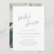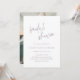 Chá de panela de estilo tipográfico elegante com um layout simples e mínimo com uma combinação de fonte serif clássica e uma caligrafia manual moderna. As costas têm sua foto favorita. O tema de cor é nevoeiro lavanda / roxo empoeirado e pode ser alterado na ferramenta de edição de design.