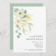 Convide seus amigos e convidados de honra para seu elegante chá de panela mínimo com este simples e chic convite para aquarelas, apresentando um belo arranjo de flores brancas de aquarela e folhagem verde em um fundo sutil e totalmente personalizável.