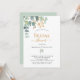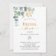 Um fundo branco chic. Decorados com folhas de eucalipto verdes, de cor aquosa, prigos, verde e um purgante de ouro falso. Personalize e o nome da noiva a ser e os detalhes da festa. Texto preto. O chá de panela é gravado com uma cor de ouro. Verso: cor verde do fundo.
