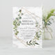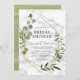 Moderno, elegante e moderno, este design chá de panela apresenta uma geometria falsa de cobre embelezada com verde de eucalipto aquoso, sobre uma textura falsa de mármore branco. Personalizada na elegante tipografia suave e escura. A parte de trás do cartão apresenta uma textura de cor aquosa verde-oliva. Convidados Elegantes de Direitos Autorais. Todos os direitos reservados.