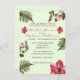 Hibisco Exótico e Palmeiras Tropicais Deixam Convites de chá de panela. Este convite, colorido e extrovertido, é verde pastel de cor com flores de hibisco vibrantes e cor-de-rosa e frondes escuras de palma verde.