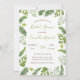 Convite moderno com tema botânico com samambaias e folhas. Design de ar para uma noiva chic. Esse tema é perfeito para um evento com tema jardim, botânico, verão ou orgânico. As letras são elegantes com um toque lúdico. As costas têm um padrão de listras na coordenação do verde. Este é um na moda e um design de tendências que, com certeza, noiva com um excelente de estilo.
