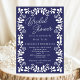 Marinho Profundo Blue Indigo e Bright White Fiesta Talavera Chá de panela - Um chá de panela para o tema "Cielito Lindo". Com a paleta tradicional mexicana de cor do azulejo Talavera, legal, profunda, sofisticada, azul de marinho e branco brilhante. O texto da caligrafia e os clássicos giros mexicanos fazem disso um convite único, acolhedor e festivo para chás de panela. Perfeito para um Brunch Fiesta Bridal Mexicano ou Chá de panela inspirado no Azulejo Espanhol. Personalize este chá de panela editável com seus próprios detalhes de evento. Disponível para pedidos em formato imprimível ou download digital instantâneo, fácil de enviar por email, texto ou mídia social.