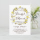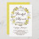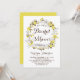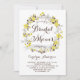 Chá de panela brilhante e ensolarado com coroa floral amarela e cinza, caligrafia moderna e padrão de confete. Este convite floral personalizável é perfeito para primavera e chás de panela de verão.