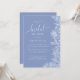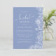 Este convite apresenta flores brancas desenhadas em linha e caligrafia personalizada. A cor azul de mirtilo é o pano de fundo perfeito para este convite.
