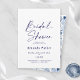 Celebre a noiva a ser com este elegante chá de panela floral azul empoeirado. Apresentando flores moles de aquarela em tons de azul e branco, este design moderno, porém eterno, é perfeito para as comemorações de primavera ou verão. Personalize com o nome, data e detalhes do evento da noiva. Ideal para um jardim sofisticado, festa de chá ou chá de panela de brunch.