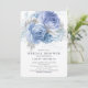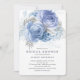 Bonito convite para chás de casamento florais azuis e prateados com um azul correspondente de volta para um toque especial extra.