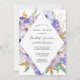 Flores bonito roxas e azuis criam um design floral ruivo para armar um Arco Boho. Flores e folhas Douradas adicionam uma vibração luxuosa a esta design rústica.