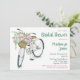 Um chá de panela fresco e bonito com uma bicicleta branca com um cheio de cesto de rosas rosa e brancas.