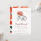 Junte-se a nós para celebrar a noiva a ser! Este convite bonito apresenta uma bicicleta azul de aquarela e um cesto de flores vermelhas.
