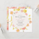 Um charmoso convite de chá de casamento com flores de aquarela macia em pêssego e amarelo em volta de um elegante layout circular. Perfeito para comemorar um casamento com um toque delicado e botânico.