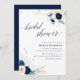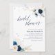Convite Chá de panela Floral Branco e Azul elegante