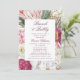 Convites de chá de panela Florais de Brunch & Bubbles Watercolor apresentam um fundo de flores a na moda de aquarelas com eucalipto, frondes de palma, rosas, peões e samambaias em tons de ameixa, burgundy, verde, pêssego e rosa. Personalizado editando o texto nas caixas de texto fornecidas. Elaborado por ©Evco Studio www.zazzle.com/store/evcostudio
