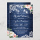 Convite Chá de panela Floral Clássico Azul Mason Jar Light