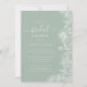 Este convite apresenta flores brancas desenhadas em linha e caligrafia personalizada. A cor verde de sábio suave é o pano de fundo perfeito para este convite.