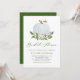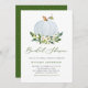 Celebrar a noiva com este chá de panela de outono personalizável. Apresenta ilustrações de aquarela de uma abóbora azul, verde e flores brancas. Personalize adicionando nomes, data, hora, local e outros detalhes do evento. Este chá de panela de abóbora é perfeito para chás de panela de outono.