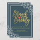Elegante Dourado Brunch e Roteiro de Inscrição em Bolhas e Quadro Floral Branco Vintage com Chá de panela de Fundo de Publicação Azul Profundo / Modelos de Cartão de Convite para Celebração de Casamento. Um Design perfeito para o seu grande dia. Todo estilo de texto, cores, tamanhos podem ser modificados para ajustado das suas necessidades!