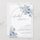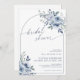 Chá de panela azul empoeirado de arco elegante, com cor aquosa, flores azuis e folhas, design.