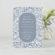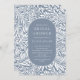 Padrão de folha e flor moderno com um na moda oval que enquadra as informações do seu partido em azul e branco em pó.