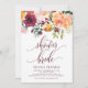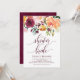 Vamos chá a noiva a ser! Convide convidados com este bonito chá de panela floral de outono. Apresenta, no outono, uma cor d'água, buquê floral de rosas, laranja, marfim e rosas cor-de-rosa, peonias e margaridas com textos roxos. Personalize adicionando os detalhes do evento. Este convite floral 'boho rustic' é perfeito para chás de panela do outono e do jardim.
