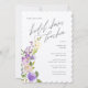 Celebre a futura noiva em estilo antes do grande dia com este elegante e romântico convite moderno. Apresentando sombras de flores e rosas de cor d'água púrpura, em cascata com sotaques de tipografia decorativa. Personalize com seu próprio texto usando os campos modelo. Visite a coleção para ver os itens de coordenação correspondentes aos seus eventos especiais!