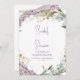 Chá de panela. Um local. Fundo de floral e Folhagem de Watercolor Lavender. Elegante. Entre em contato com o Designer para ver as alterações feitas neste modelo para adequar suas necessidades individuais. (ex. locais, pais, recepção)